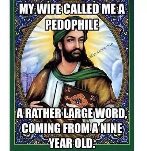 3) Narrated ‘aisha: that the prophet married her when she was six years old and he consummated his marriage when she was nine years old, and then she remained with him for nine years (i.e., till his death). (Book #62, Hadith #64)![]()
